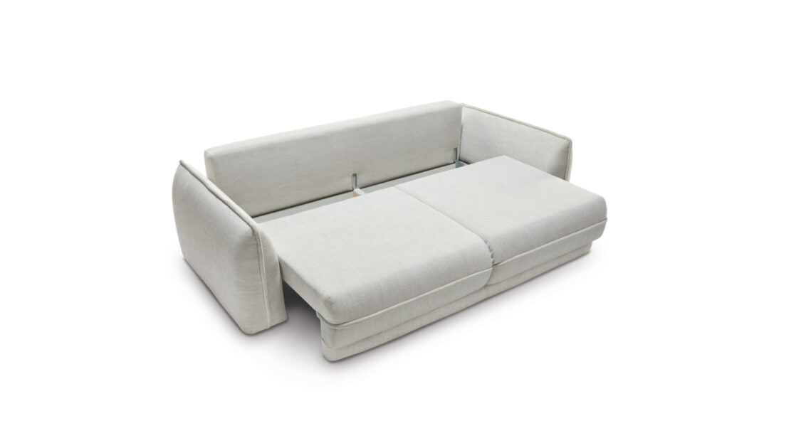 Le canapé Mojave est équipé d'un rangement pour le lit et d'un mécanisme pratique et facile à utiliser pour déplier la fonction de couchage, de sorte que la grande surface de couchage garantira une nuit de repos au plus haut niveau.