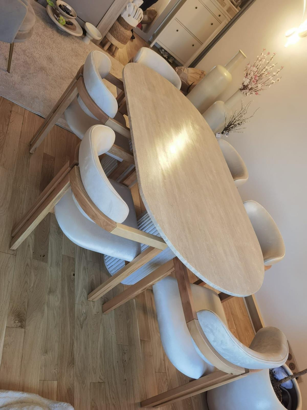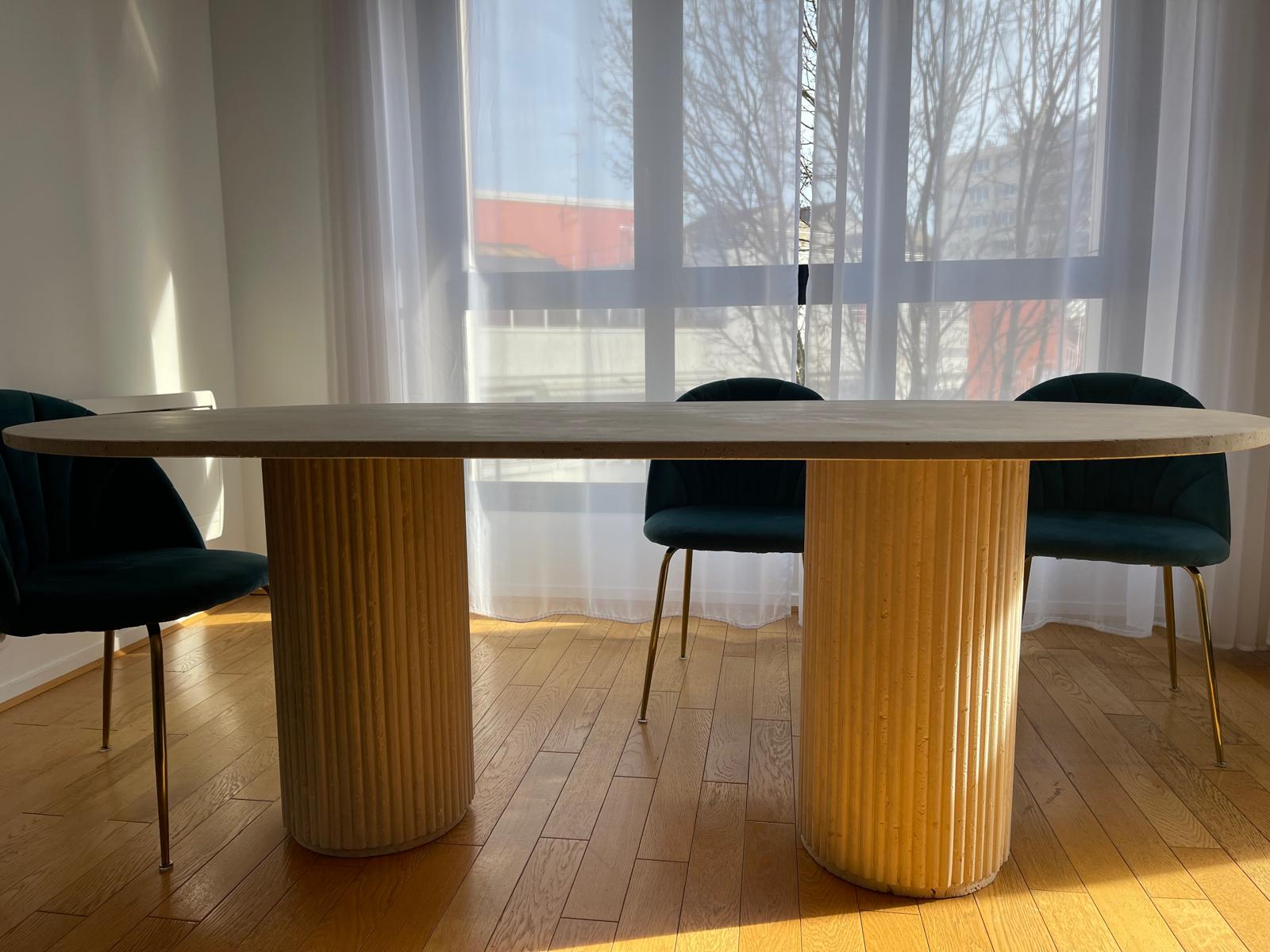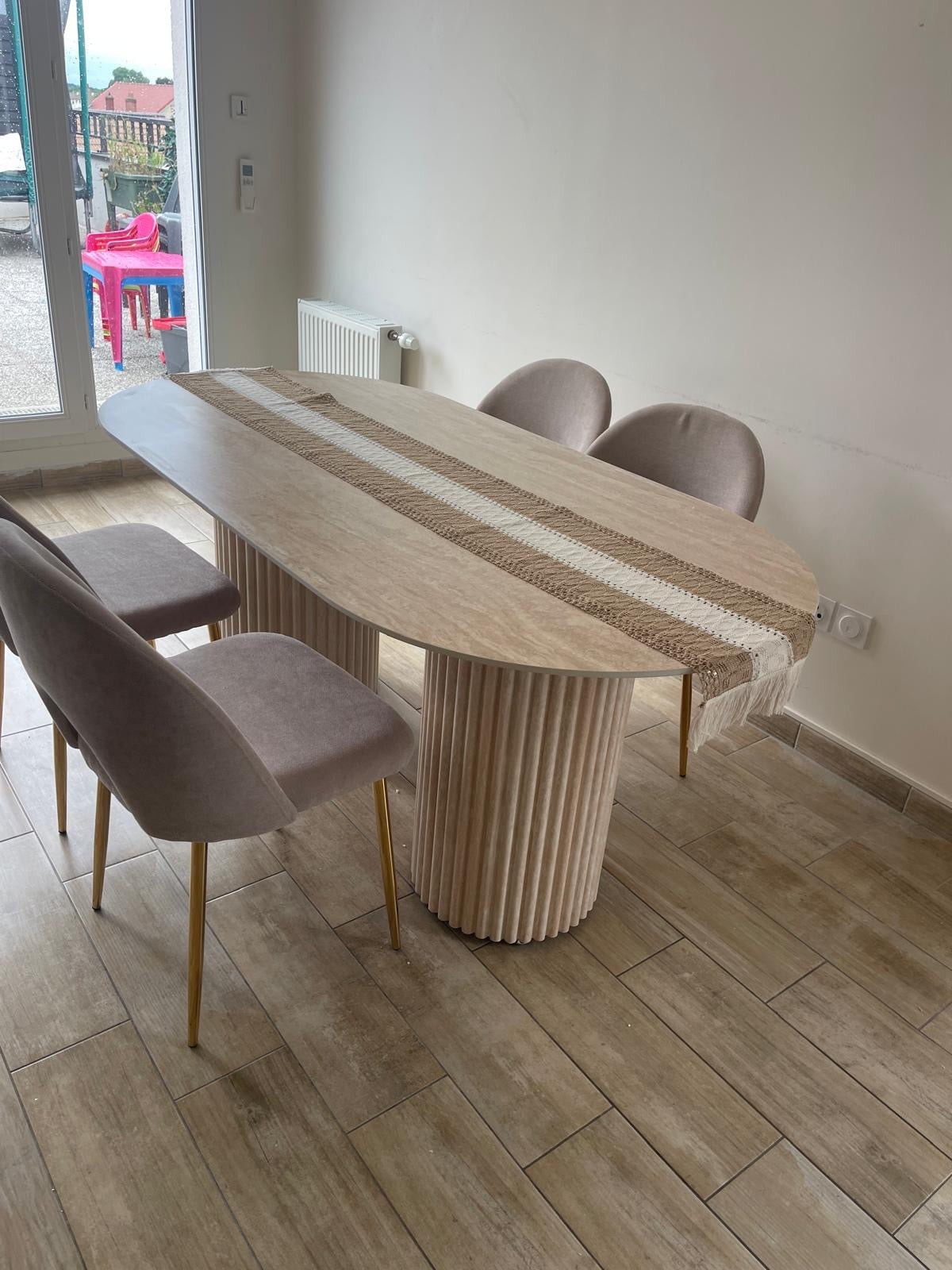 La table Toscane est un choix élégant et authentique pour votre salle à manger. Fabriquée en travertin naturel, son plateau ovale met en valeur sa beauté naturelle.